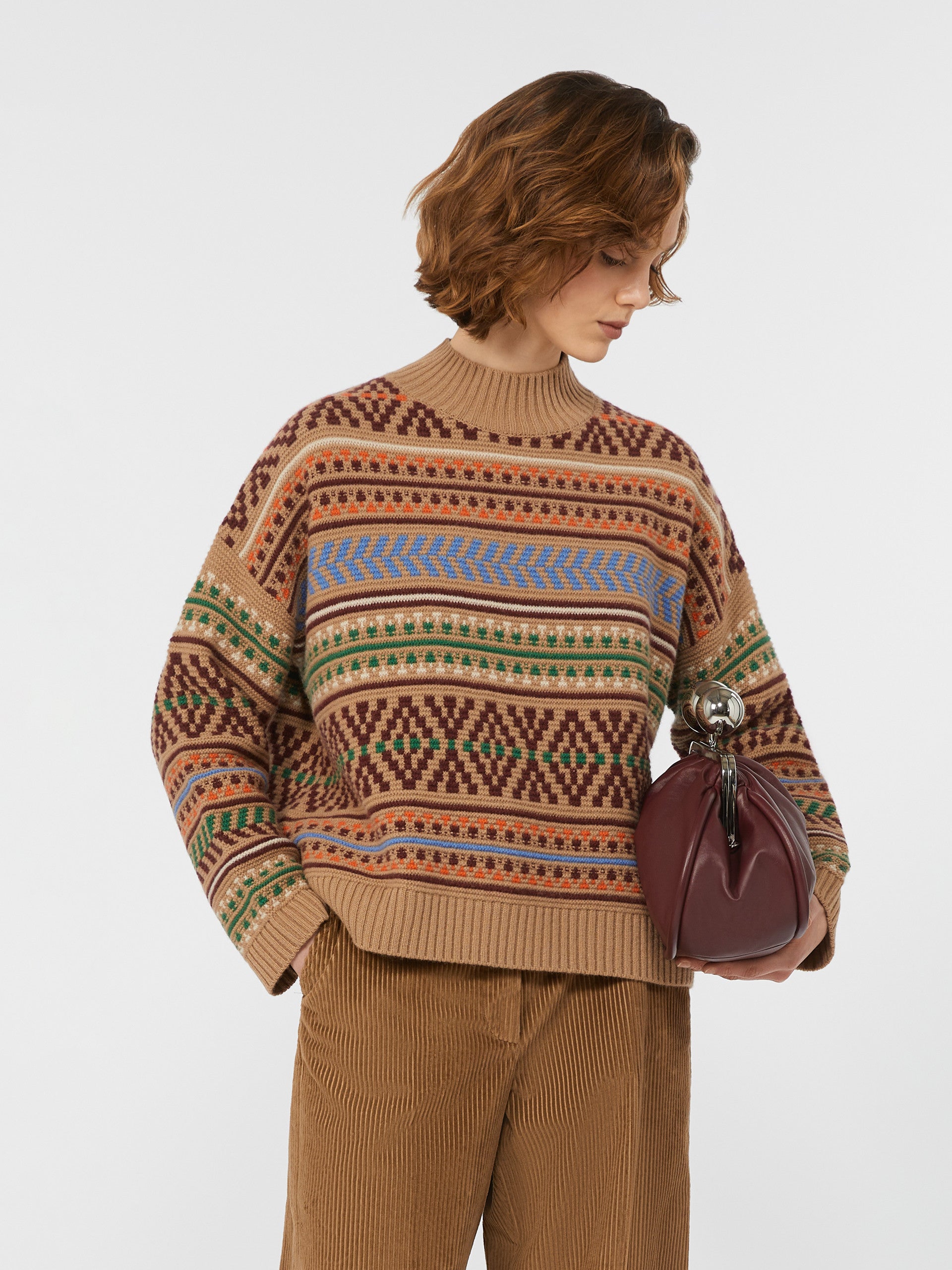 Maglia dalla vestibilità morbida, impreziosito da una lavorazione jacquard su una ricca texture a punto links.